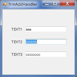 [Enter]キーを押下することで3個の TextBox のフォーカスが移動します。