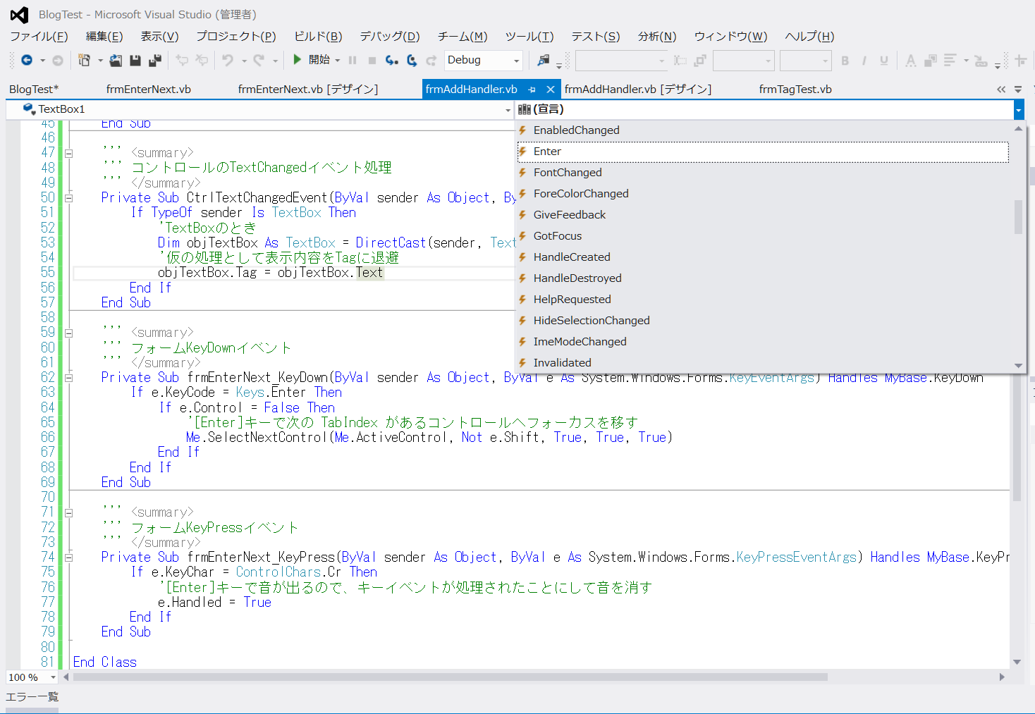VB.NET Tips - フォーム上のコントロールのイベント処理の関連付け