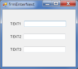 [Enter]キーを押下することで3個の TextBox のフォーカスが移動します。